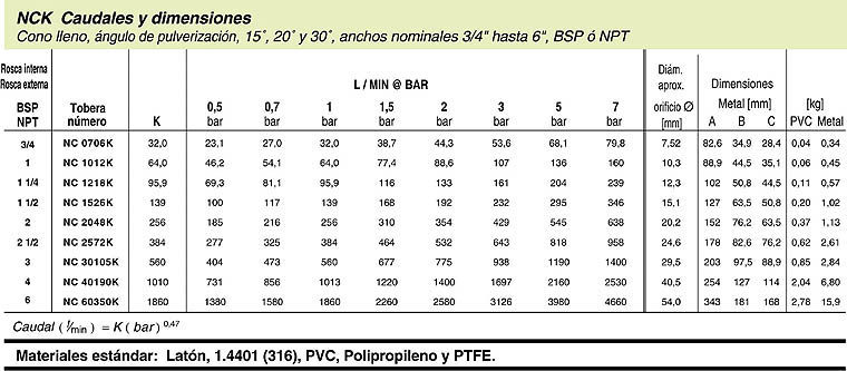 | CONSTRUCCIóN • Angulo de pulverización pequeño • Alta velocidad • Conexión con rosca externa e interna • También disponible con conexión por brida • Disponible en aleaciones de plástico y de metal |