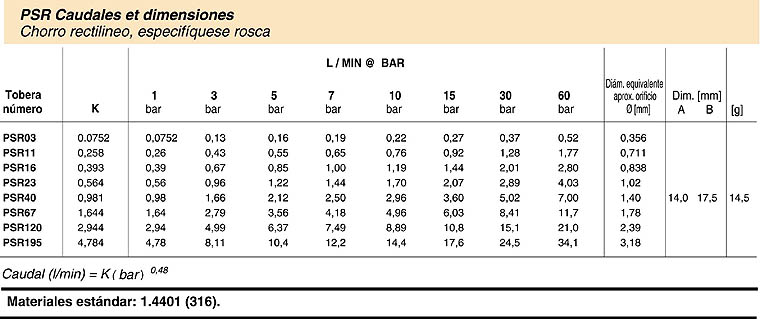 PROPIEDADES DE PULVERIZACIóN • Chorro agudo rectilineo ángulo de pulverización: 0° Caudales: 19,1 hasta 229 l/min |