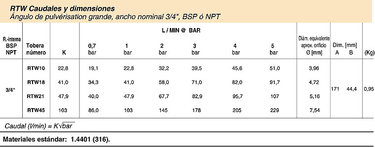 PROPIEDADES DE PULVERIZACIóN • Baja velocidad giratoria garantiza una mejor intensidad de limpieza • Gran superficie de pulverización Caudales: 19,1 hasta 229 l/min |